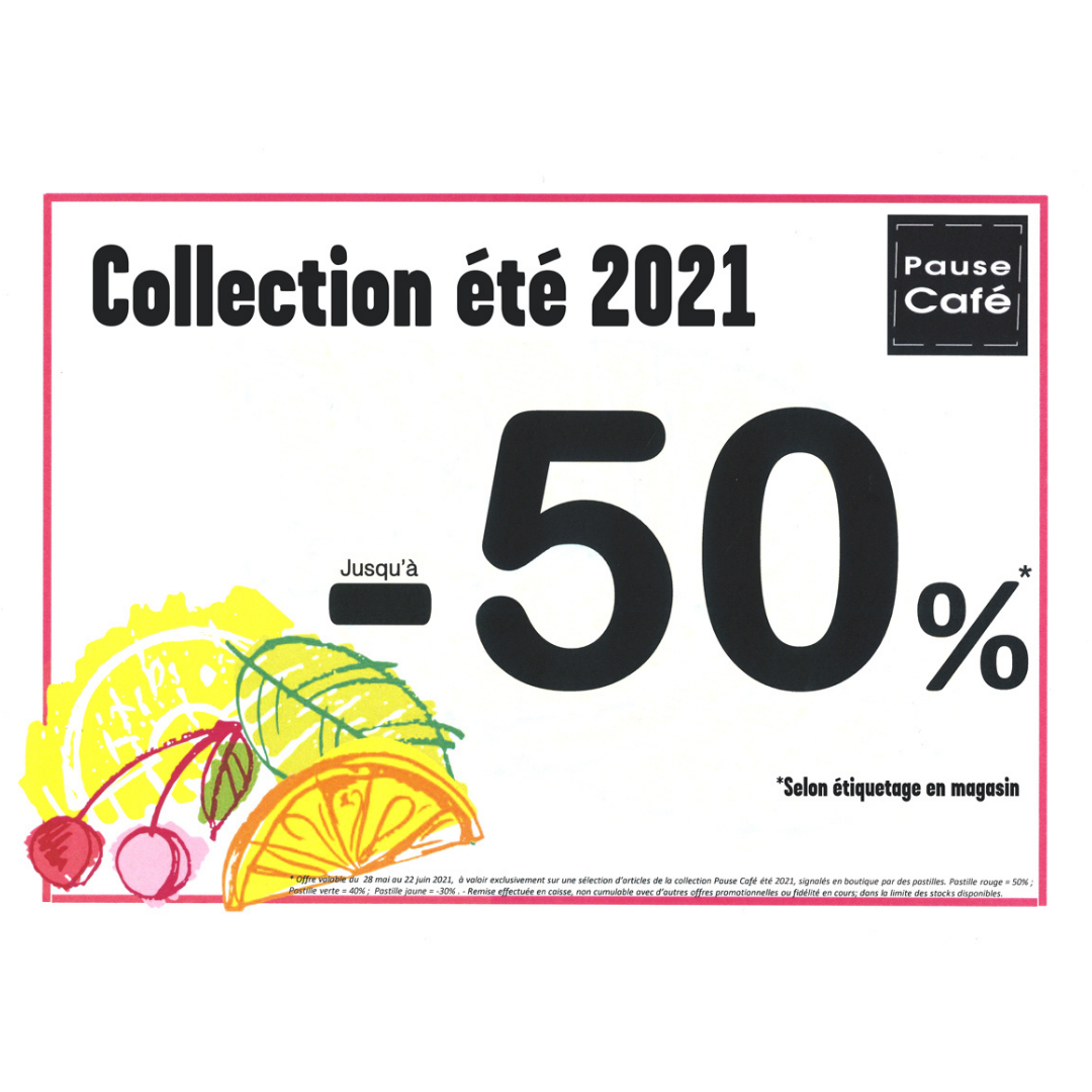 Jusqu’au 26 juin, bénéficiez d’offres exceptionnelles jusqu’à -50% sur la collection été 2021 « Pause Café » selon étiquetage en magasin !
